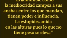 Aforismo sobre la mediocridad de los poderosos “Es admirable cómo la mediocridad campea a sus anchas entre los que mandan, tienen poder e influencia. La estupidez anida en las alturas y lo que no tiene peso se eleva”